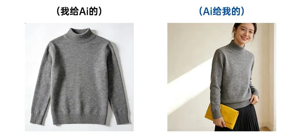 生成结果:服装版型与模特身材严丝合缝,光影过渡极其自然。这种图特别适合天猫主图、小红书穿搭种草,能精准击中追求品质生活的女性受众。。