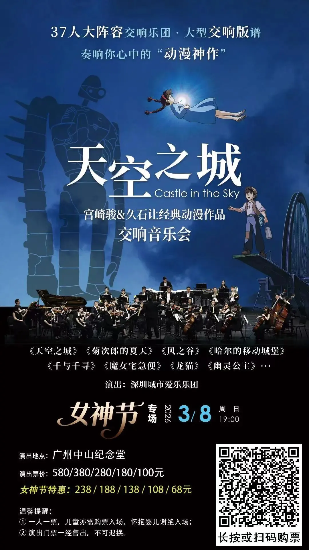 【开票】3.8女神节|赴一场37人大型交响版《天空之城》的交响之约,致敬永不褪色的温柔力量!