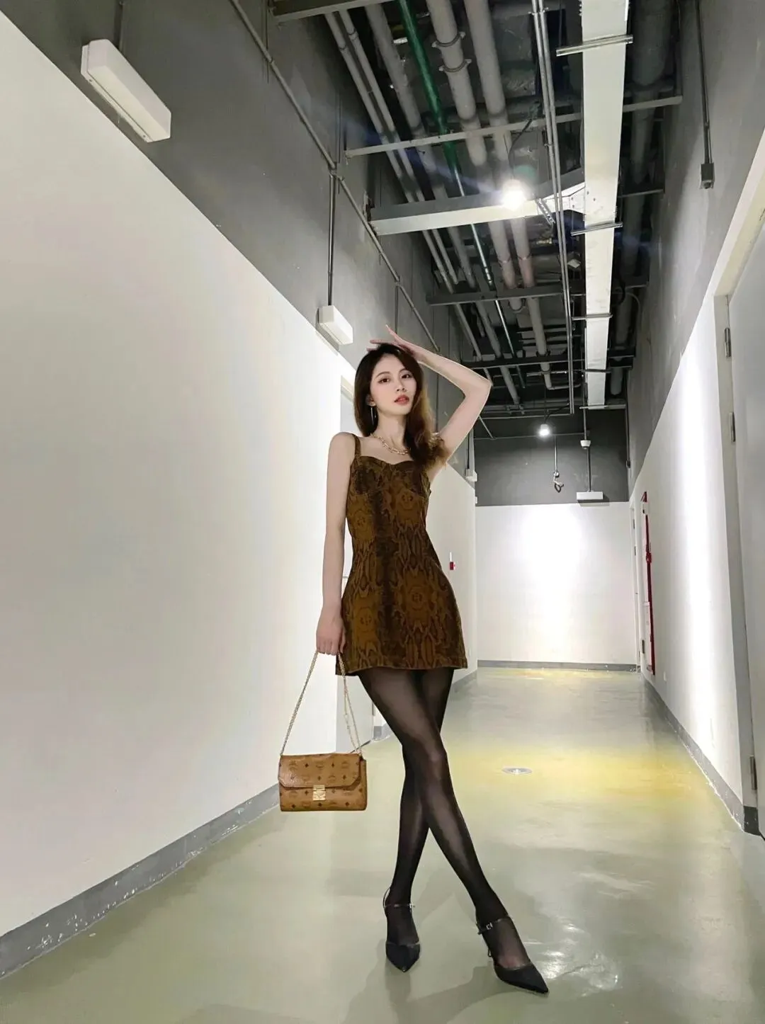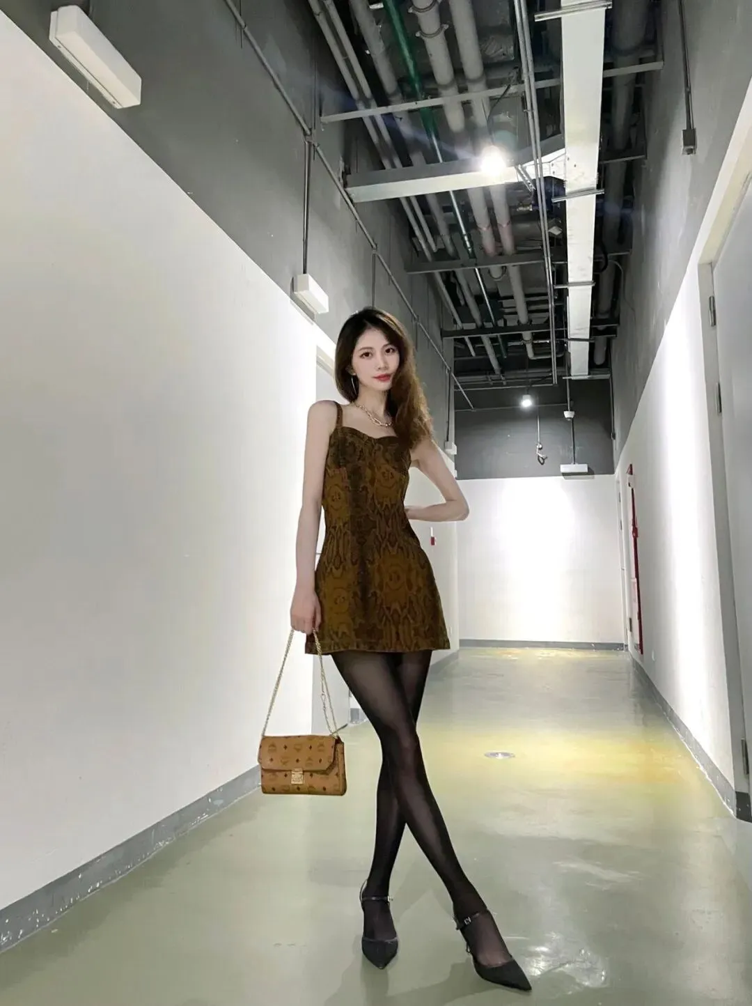 当前位置:首页>美女资讯>网红模特,时尚穿搭,穿吊带连衣裙,黑丝大长腿