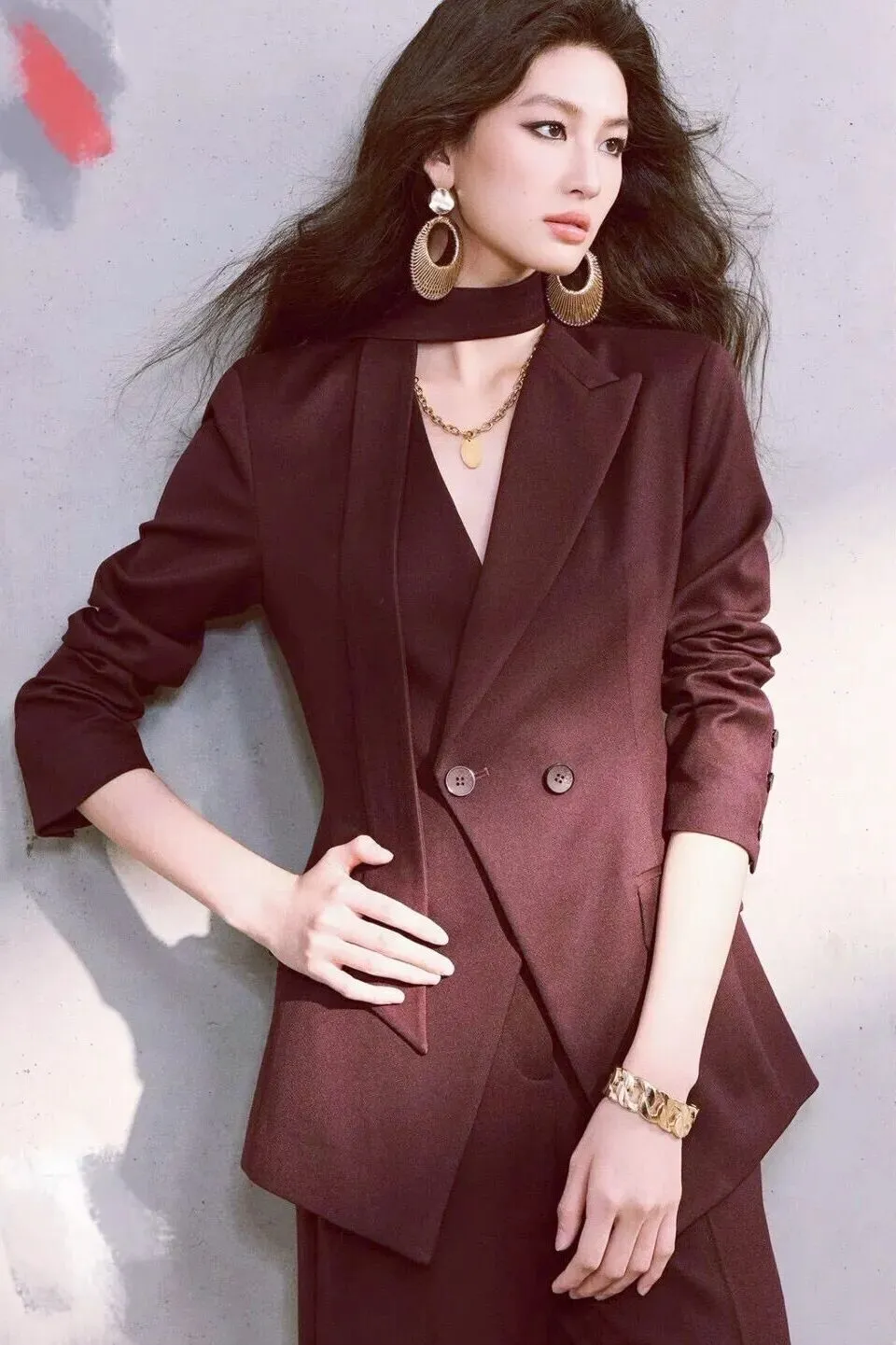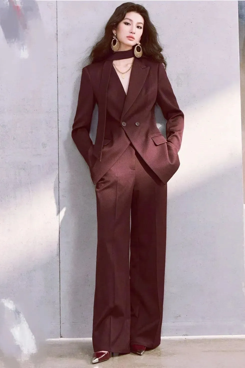 当前位置:首页>美女资讯>别再穿黑白灰了!这套“酒红西装+蕾丝内搭”,职场大女主的氛围感直接拉满!