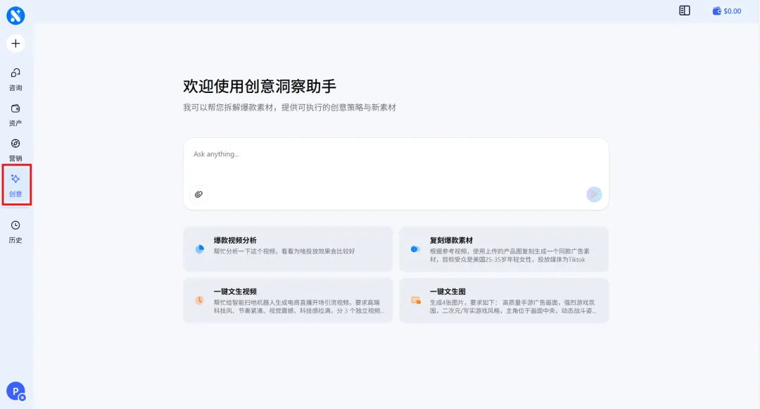 1.登录Navos后,选择【创意】功能板块
