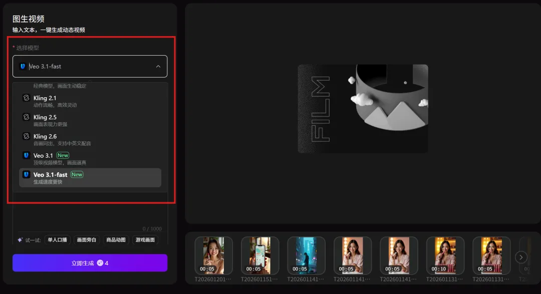 Veo 3.1-fast:生成速度更快
