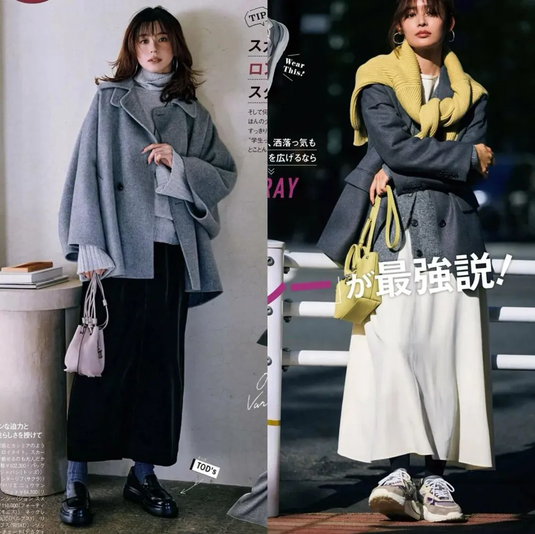 比如毛呢外套,无论是长款还是短款,搭配灰色或者黑色下装,所呈现出来的简约和高级,在日杂模特的穿搭中都比较常见,想要更衬肤色,选择白色内搭,或者白色围巾加持,选择深灰色内搭,会更显高级一点,适合职场通勤风。