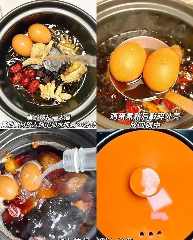 除了枸杞和米酒 , 其他食材洗干净 , 放砂锅里加水煮20分钟。