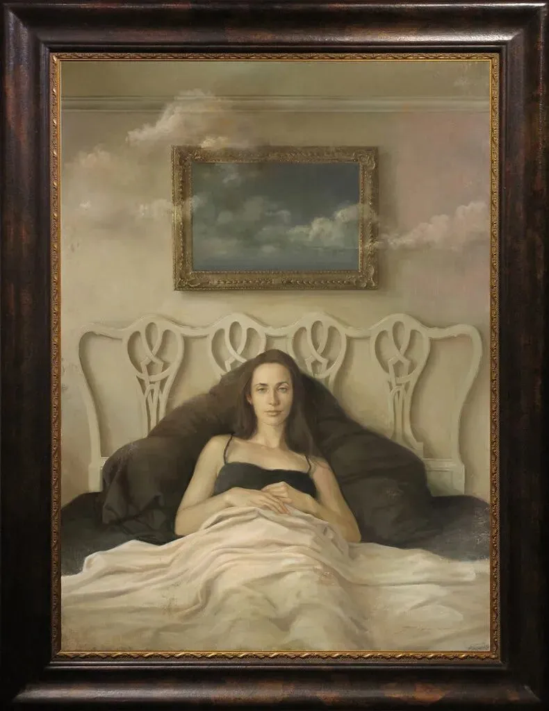 他的作品不仅是视觉上的“真实”,也是一种情感上的“凝固”。通过一种带有克制感的笔触,构建出了一个超越现实的心理空间。