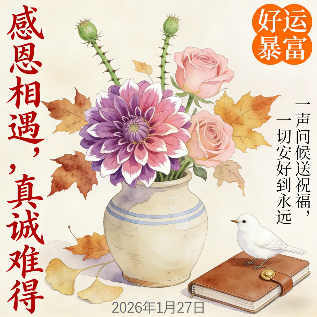 当前位置:首页>美女资讯>1月27日早上好图片:祝你事事顺心,好运连连