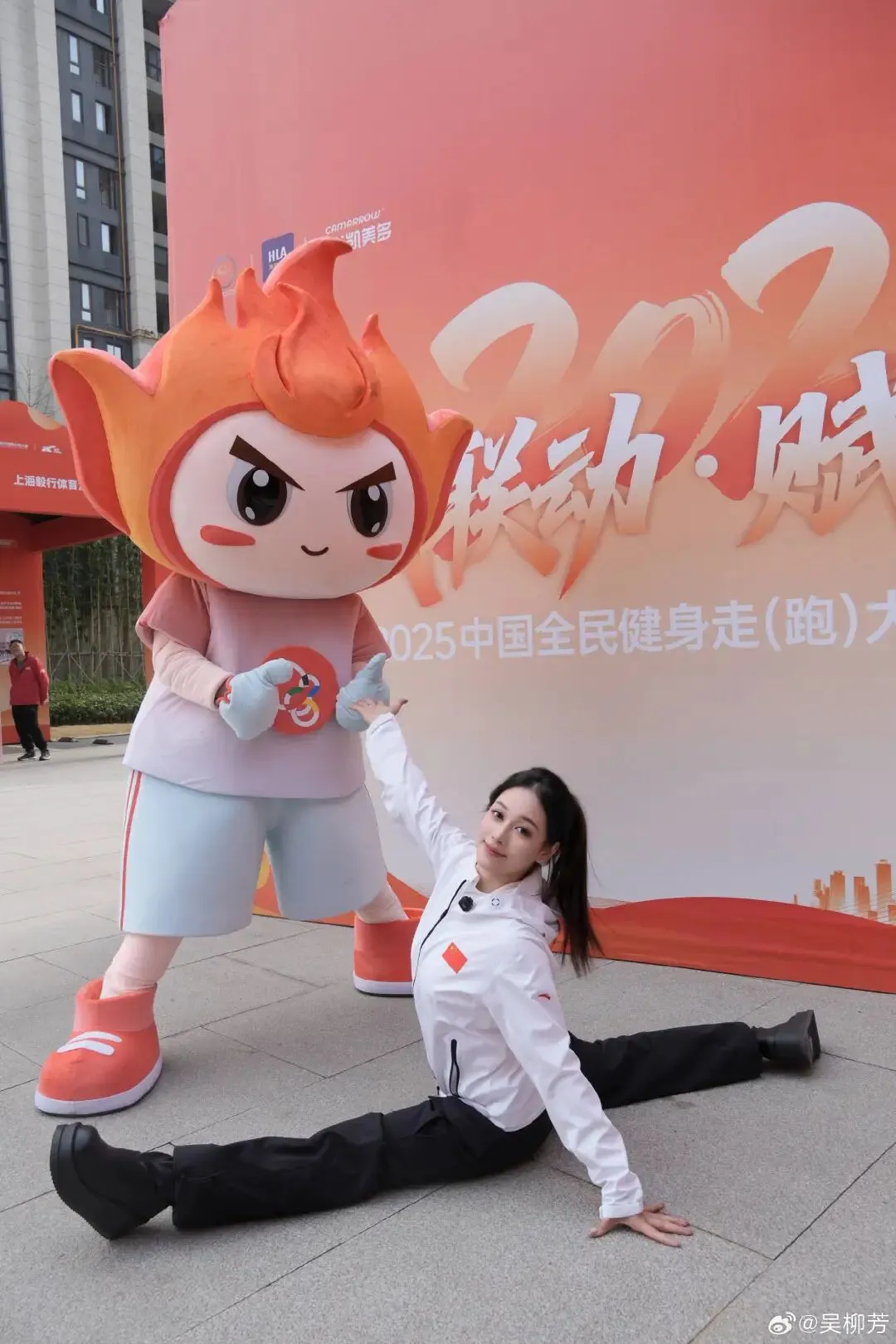 从照片可以看到,吴柳芳在吉祥特玩偶身前大秀一字马绝技,有爱的画面让网友们纷纷留言点赞:“真的更适合淡妆素服,好看”、“芳芳的体操功底还在呢,这一字马太专业了”、“自律又优秀的学姐(吴柳芳的昵称),会一直为你应援的”、“好美,无愧是中国体操的颜值担当”、“芳芳这颜值,真的完全不输娱乐圈的女明星”、“感觉那一场风波之后,芳芳变得更沉稳了,美貌还是那么顶”、“又是沉迷在56(吴柳芳的另一个昵称)的美貌中不可自拔的一天”、“真的,这种简简单单的妆容和打扮才是最适合学姐的,把最真实的绝美容貌展现得淋漓尽致”。