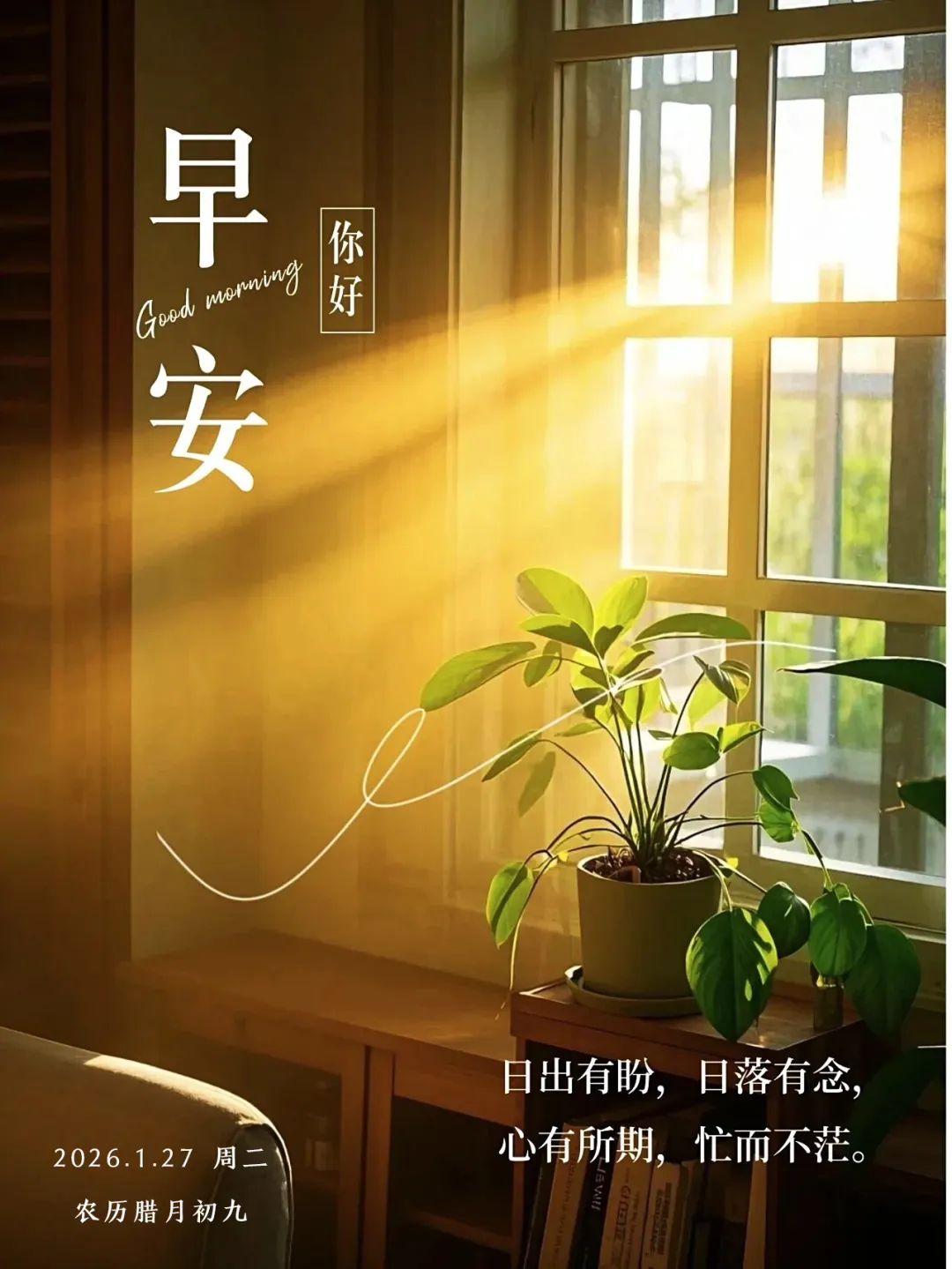 当前位置:首页>美女资讯>2026年1月27日早安图片带日期,周末祝福图片