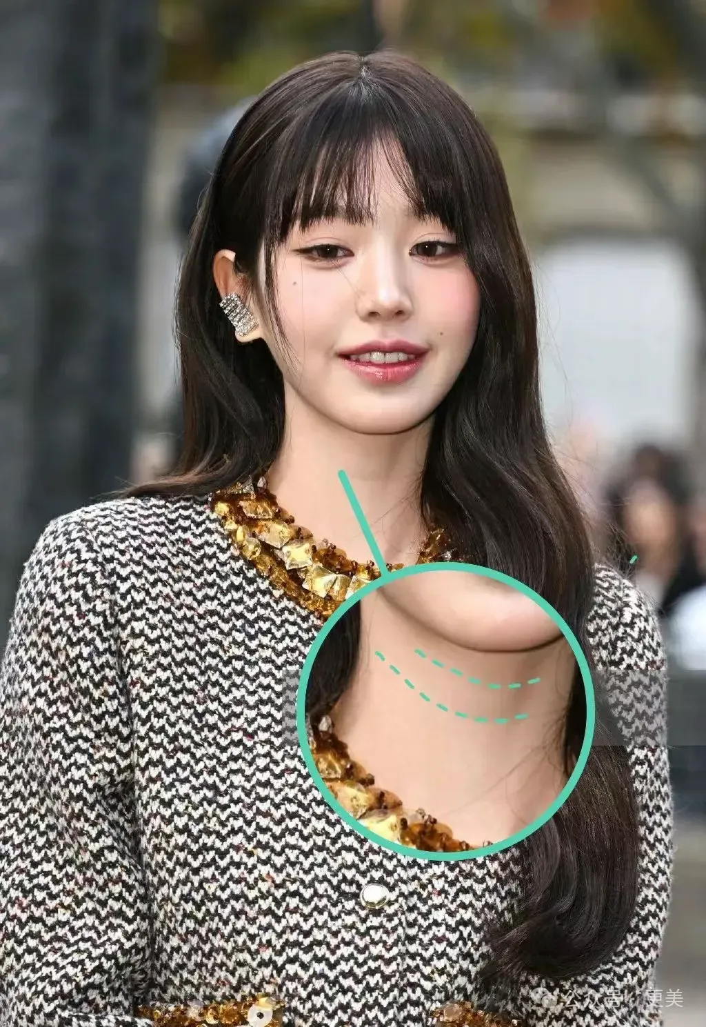 明显的颈纹让颈部状态与精致的脸部形成强烈反差,瞬间拉低了整体的精致感。