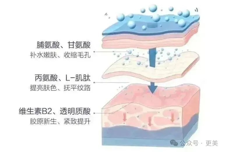 非交联的小分子玻尿酸(填充作用)+多种氨基酸(辅助生成胶原蛋白)+L肌肽(抵抗自由基,保护胶原蛋白)。