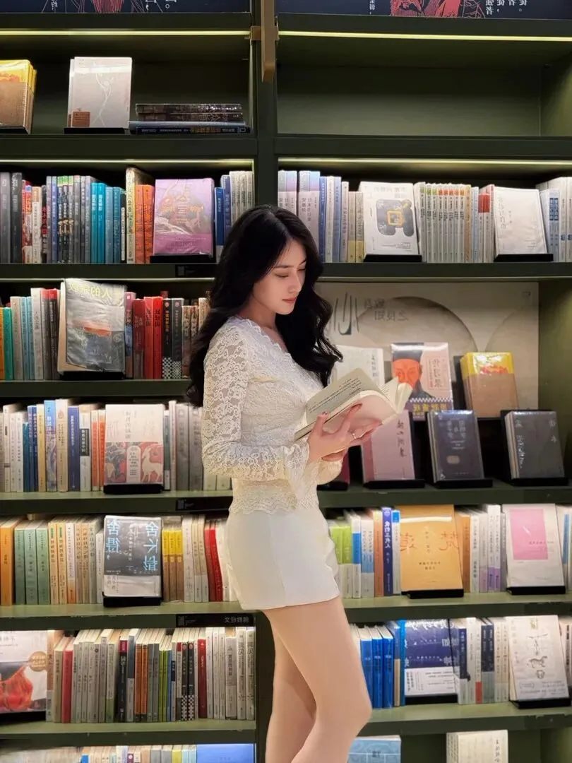 .张书店.里的照.片更.是氛围.感拉.满,小.姐姐站.在书架前.,专注.地看着.手中的.书。蕾丝.上衣.的细.腻花纹.和宽.松的袖.口,.既有温柔感.又不失知.性。.下装的白.色短裤简约.利落,勾勒.出纤.细的.腰肢和匀.称的腿.部线条。她.的长.发自然.垂落.在肩头,神.情沉静.又温婉,.就像书.中走出来的.女主角一.样有气质。.这种穿搭在.书店里既.不会过于张.扬,.又能体.现出独特.的品味,.简直.是文艺.少女.的穿.搭模板。