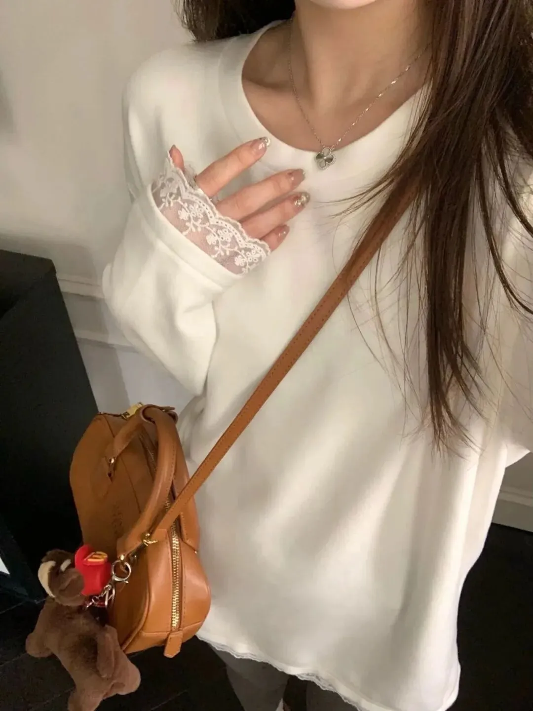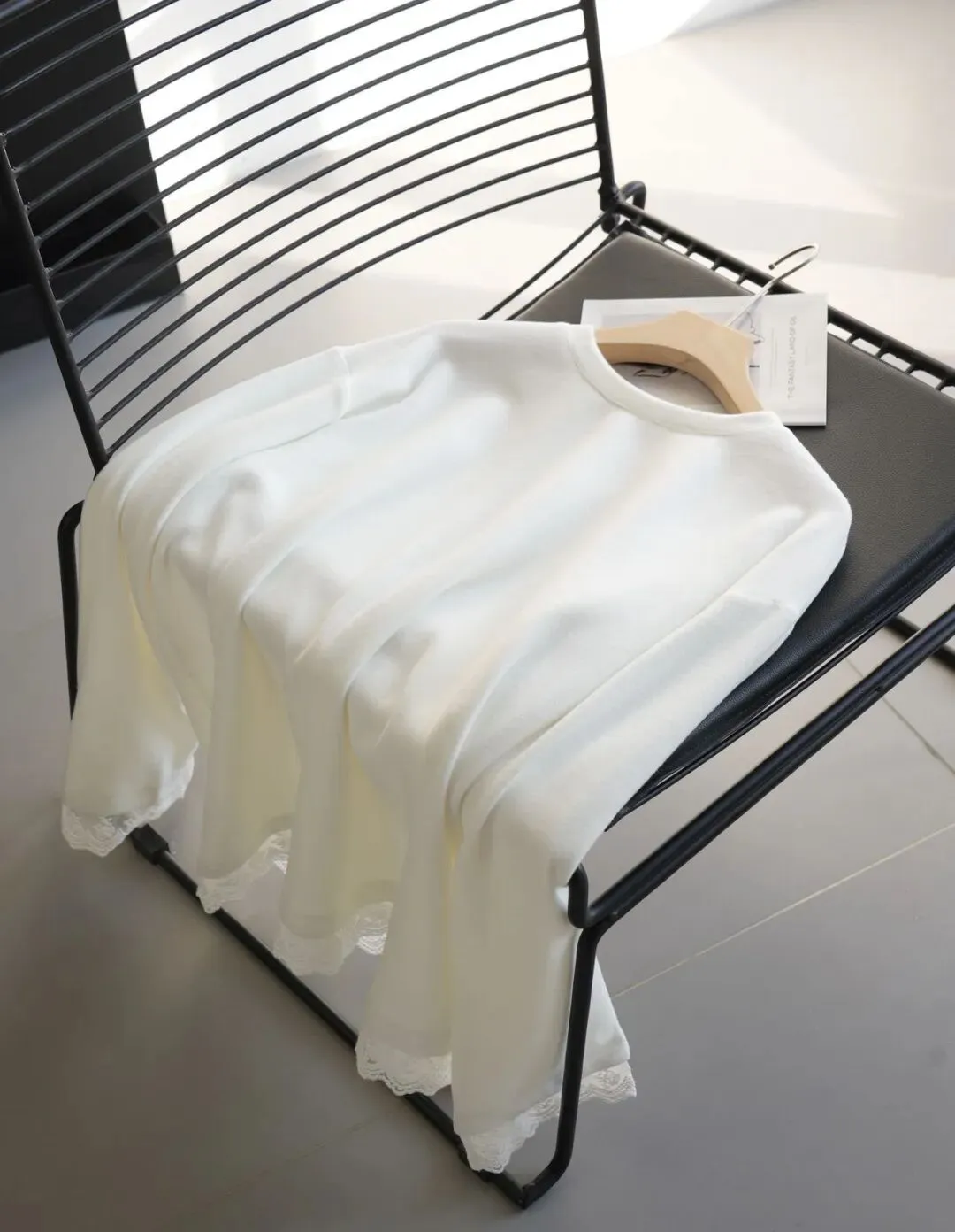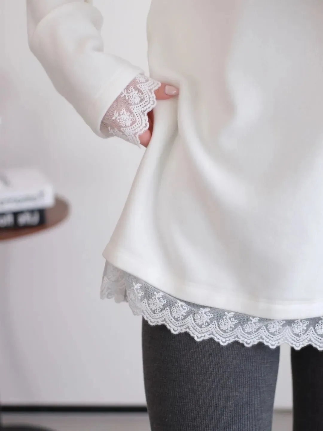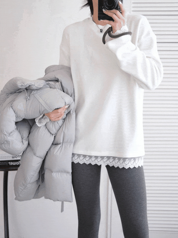 领口跟下摆有超美的蕾丝,随便叠穿毛衣/卫衣/开衫都很有氛围感,温柔大方的感觉,超级推荐!