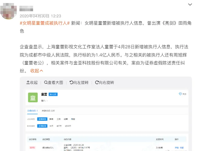 童蕾也受到牵连,背上了1.4亿的夫妻共同债务,还被列为了“失信被执行人