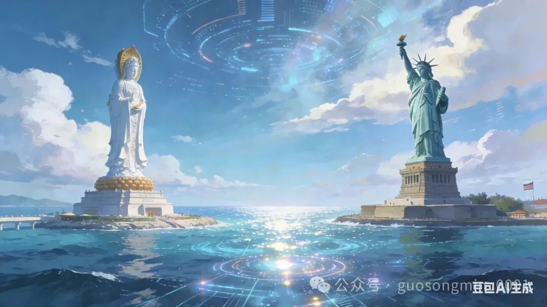 一尊海上观音,一尊自由女神,隔着浩瀚的太平洋,遥遥相望。