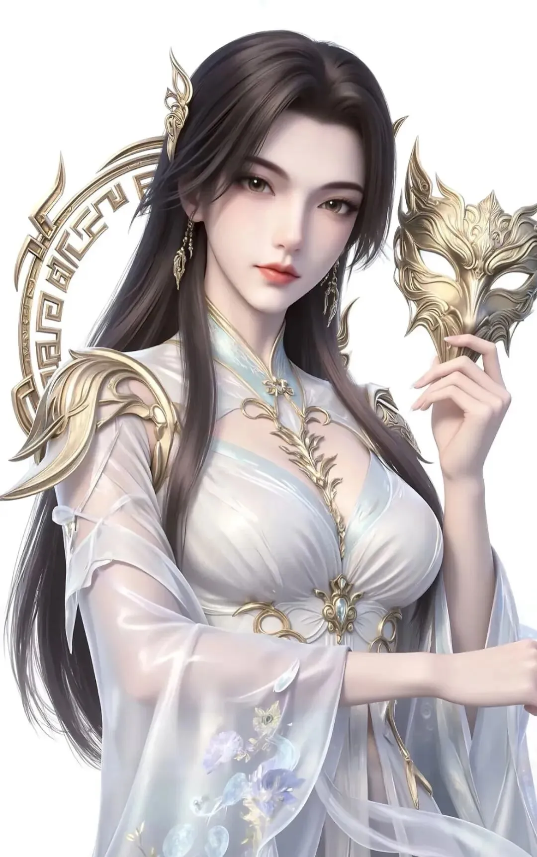 然而,在这极致的高冷之下,却潜藏着一种惊心动魄的诱惑。这诱惑并非世俗的妩媚,而是一种源于其强大、神秘与破碎感交织的致命吸引力。那张似哭非哭、似笑非笑的青铜鬼脸面具,是她最标志性的符号。面具遮住了艳冠天下的仙颜,仅露出清澈如秋水的瞳孔与精致下颌,反而激发了世人无尽的好奇与想象。