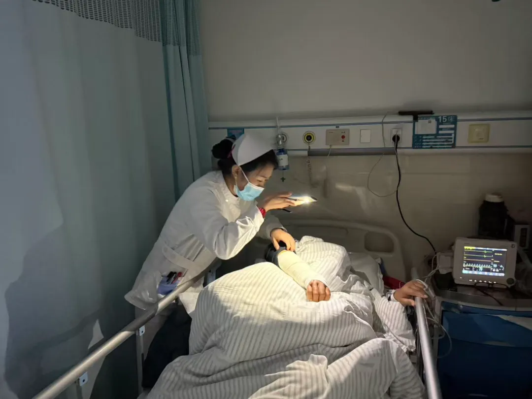 夜晚是病情高发时段,护士们凭借敏锐的观察力,从细微之处捕捉病情变化,及时处置突发状况、遏制病情恶化,多次在深夜为患者化险为夷,以专业筑牢生命的安全屏障。