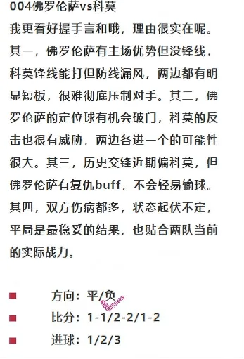 综合来看,我更看好马竞主场小胜。马竞的魔鬼主场太过坚固,近期主场甚至能零封对手让其无射正机会,防守端完全能压制博德闪耀的反击。虽然阿尔瓦雷斯陷入进球荒,但瑟洛特状态正热,略伦特也能带动中场,攻坚能力足够。博德闪耀虽全员健康且反击犀利,但客场面对马竞的高强度防守,很难复制击败曼城的效率,顶多靠反击偷得一球。小胜的比分既体现了马竞的主场优势,也尊重了黑马的冲击力,是比较合理的结果。