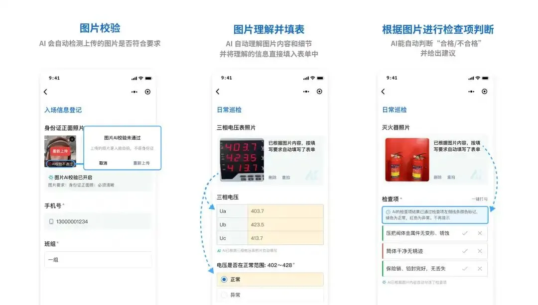 我们将原有的“AI图片审核”功能更名为“图片校验”,与此前仅高级版可用、需单独配置的“AI 填表组件”功能,合并为图片组件内的「AI 智能增强」模块