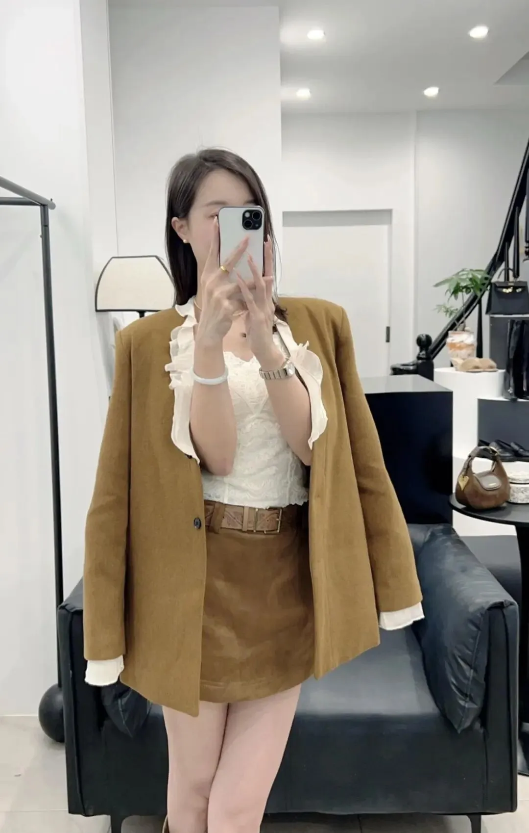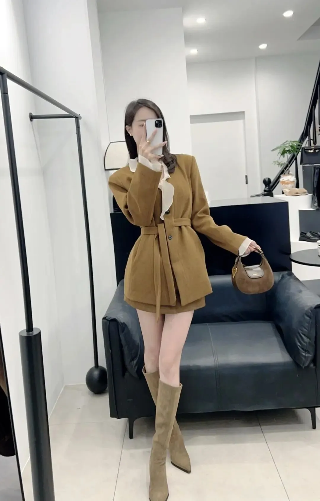 当前位置:首页>美女资讯>温柔又贵气感驼色西装 + 蕾丝内搭,气质女神必备