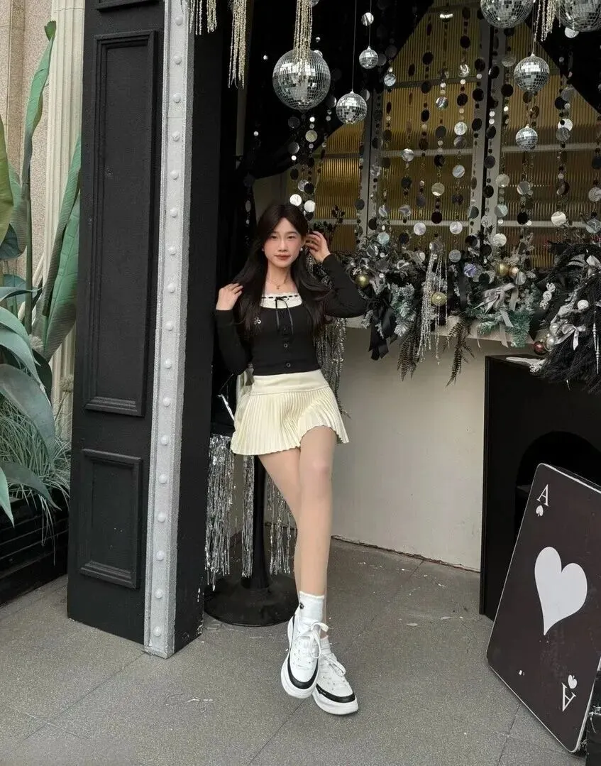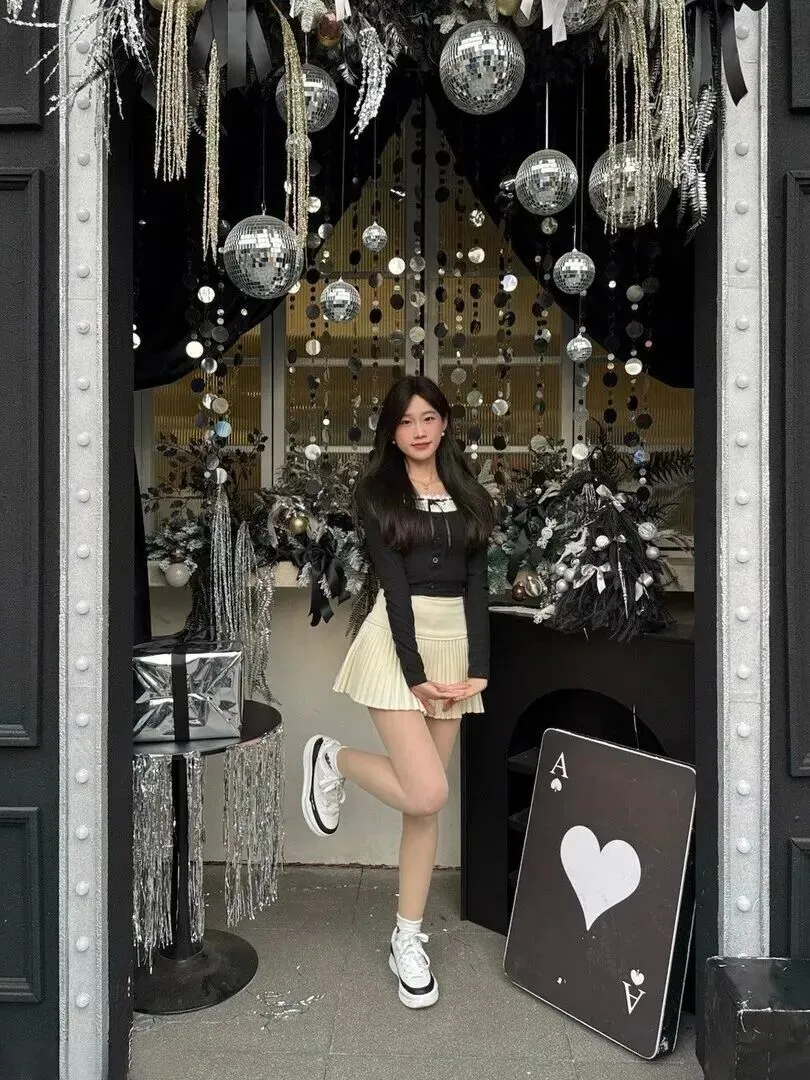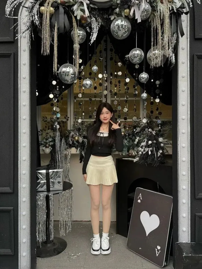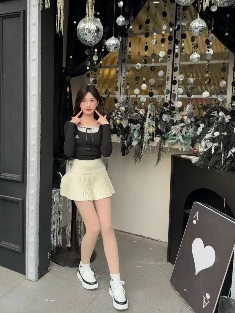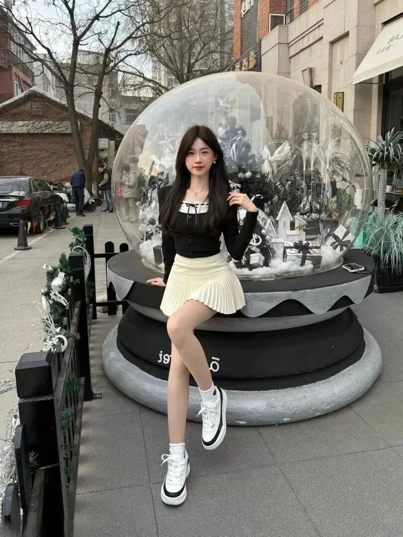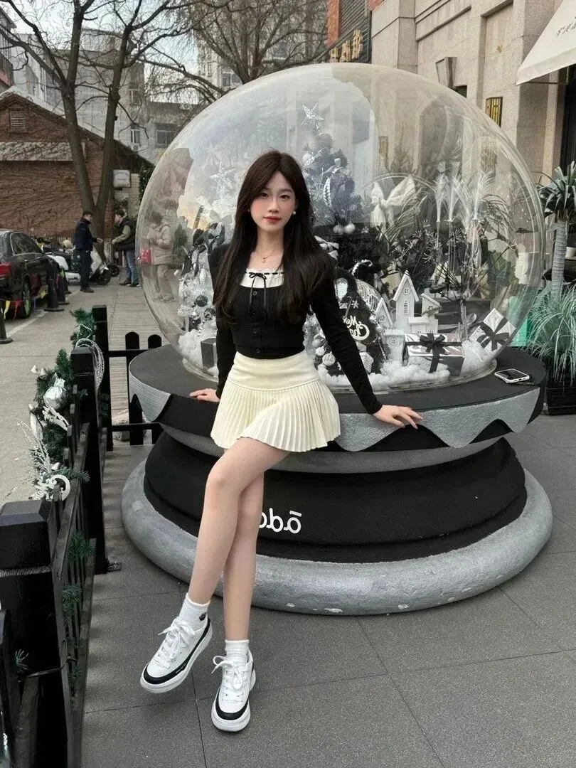 .刷朋友圈发.现,今年圣.诞约会.的穿.搭暗号变成.了「.甜酷.风」。黑色.针织开衫.配米白百.褶裙的搭.配,简直.成了派对.季的万能公.式。既.不会过分.可爱,.又带着一点.小叛逆.,穿去.聚餐.、拍照.都特.别出.片。