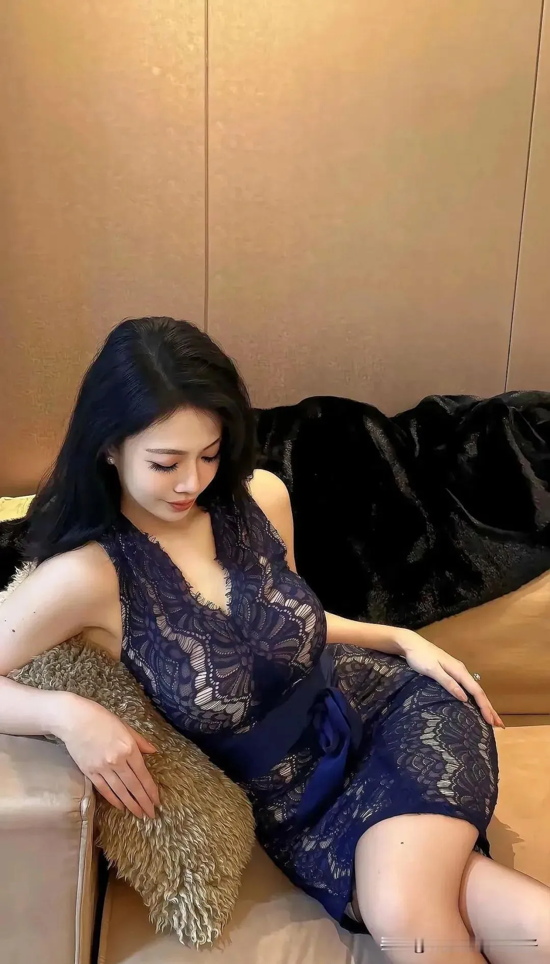 当前位置:首页>美女资讯>藏蓝蕾丝V领包臀裙+裸色丝袜衬纤细长腿,纯欲鹅蛋脸搭黑长卷发,配漆皮高跟鞋,难道轻熟御姐风穿搭不能又撩又高级?