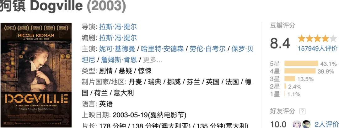 《狗镇》以其独特的叙事方式和深刻主题,一度成为了无数影迷心目中的经典之作。