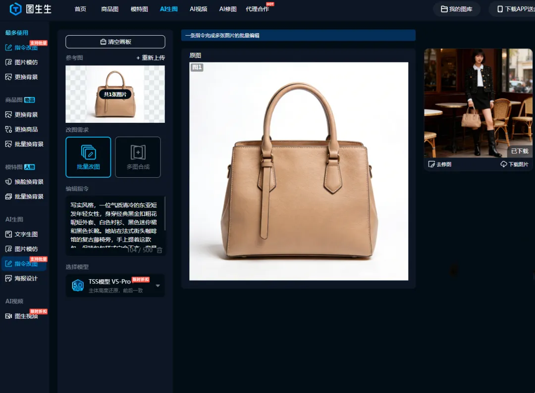 电商包包带货必看:AI生成模特产品图(附指令)