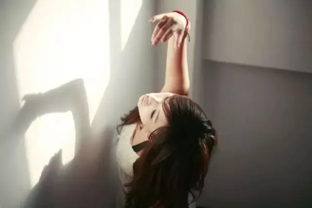 这是一个非常普通的楼梯间,我经过时被从上方洒落到墙面的光线吸引了。于是我请模特站到光线前,希望她的手自然地往上方缓慢挥动,并且旋转身体,再用连拍模式,两张一组,看准了先拍一组,再继续拍摄一组,连续拍个两三组,完成!