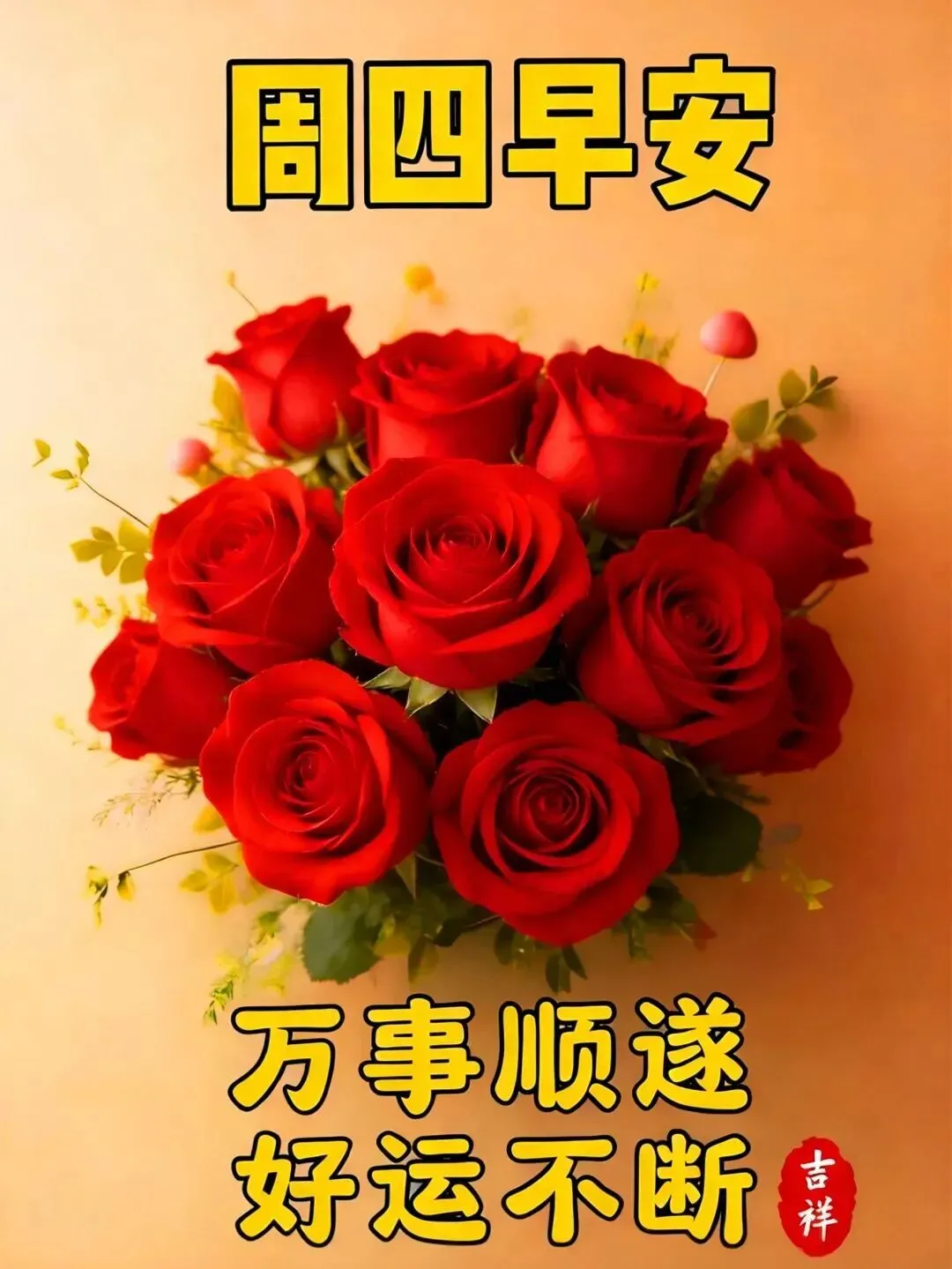 无数个昨天悄然过去,美好的今天含着微笑而来。我们每日相聚于微信之中,彼此祝愿:岁岁平安,健康永远!周四早安愉快!