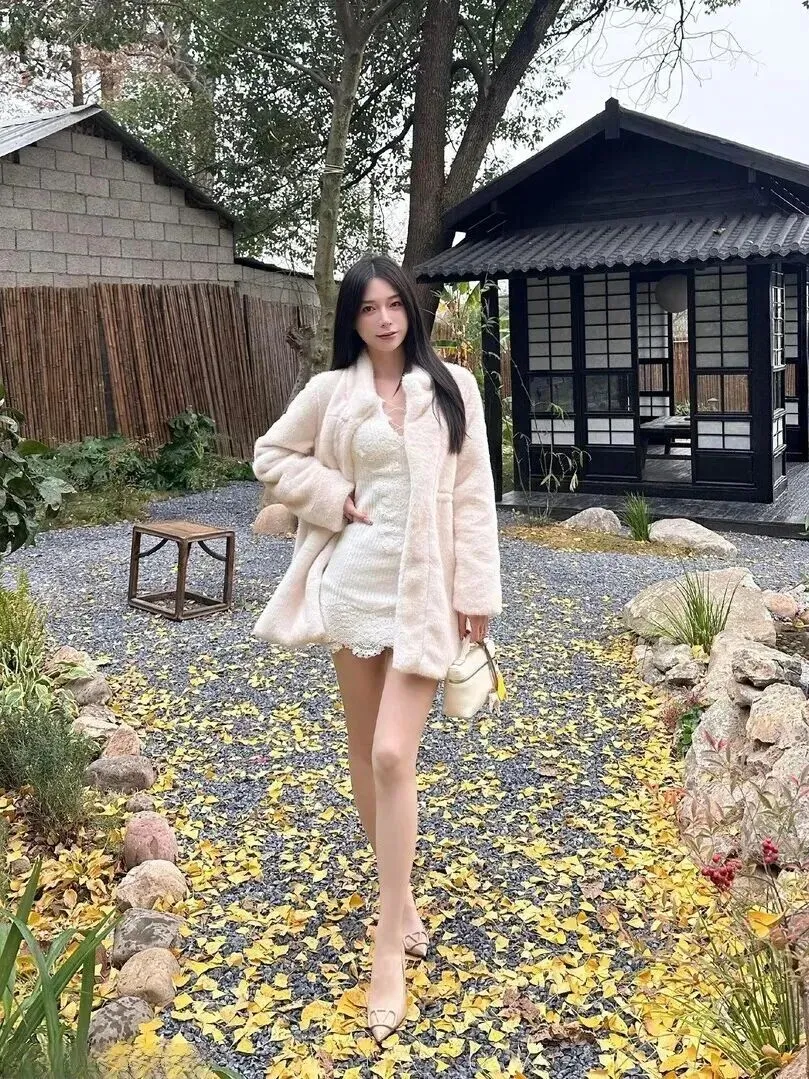 .天一.到,街.上穿什.么的都有。.但有.一种.搭配,看一.眼就.觉得.好温.柔啊——.米白色.毛绒外套.配白色.蕾丝连衣裙.。前两天刷.到一位博.主在.落叶堆.里拍.照,整个.人就像.一颗会.走路的大.号棉.花糖,软糯.糯的.,甜.得恰到好处.