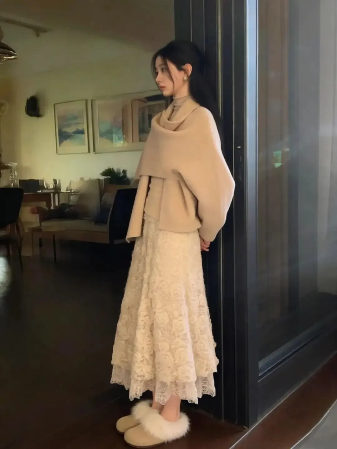 当前位置:首页>美女资讯>驼色披肩+蕾丝半裙,温柔精致搭.