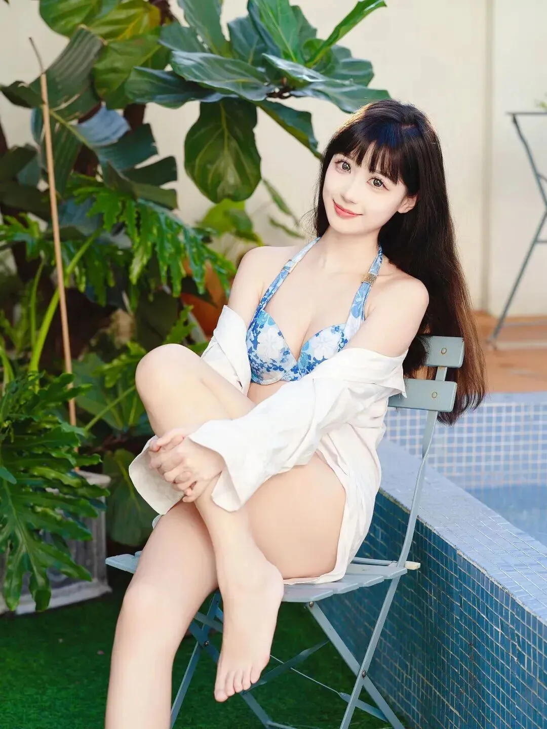 美女写真 白衫,夏日里的一抹青花