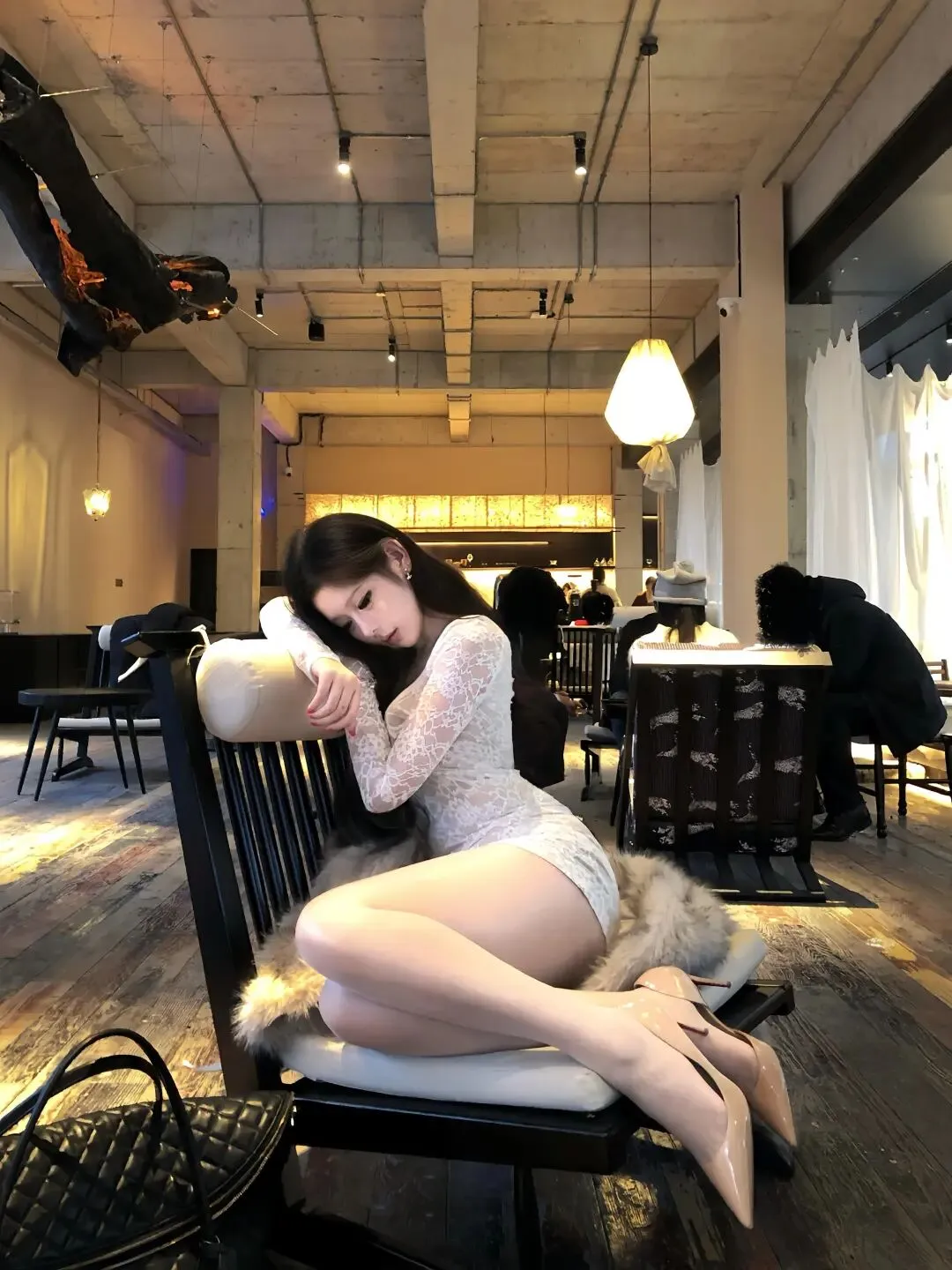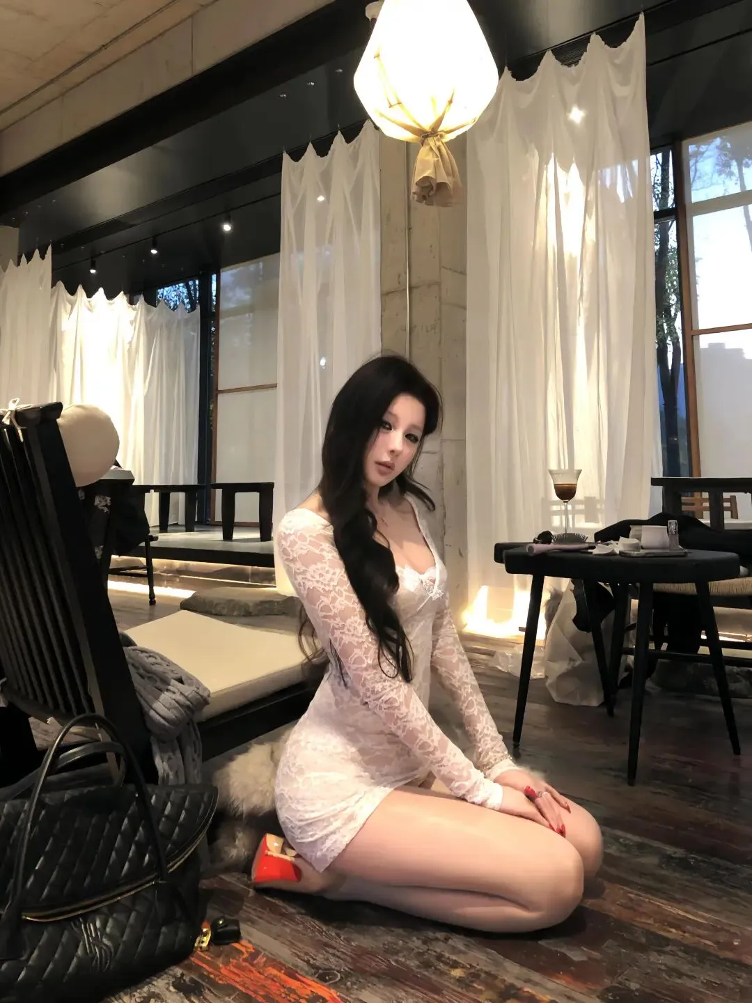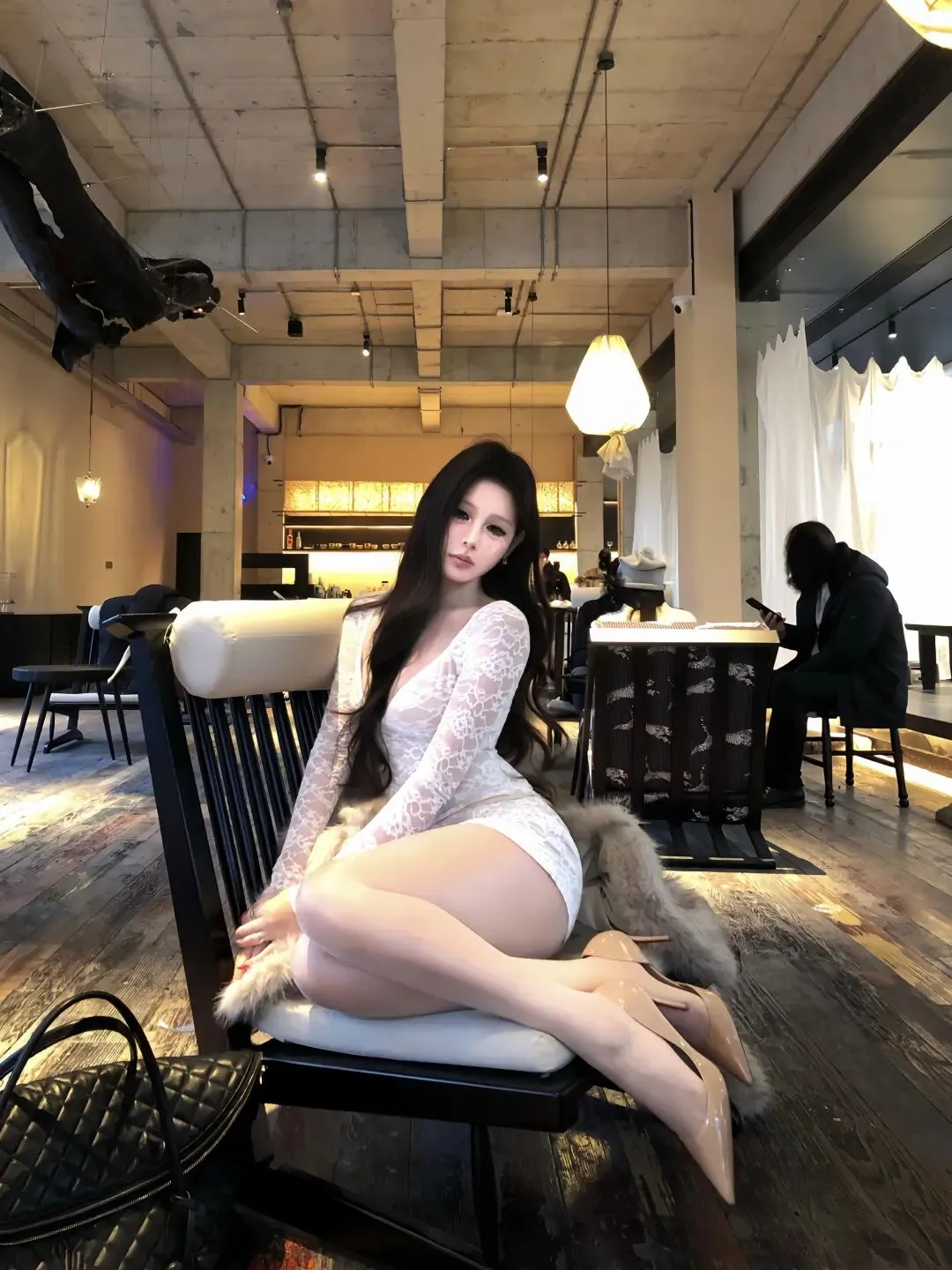 当前位置:首页>美女资讯>白色蕾丝深V连衣裙配厚黑180D,尖头细跟鞋勾勒大长腿!露肩设计揉进法式优雅,往咖啡馆一坐,松弛又吸睛,氛围感直接拉满~