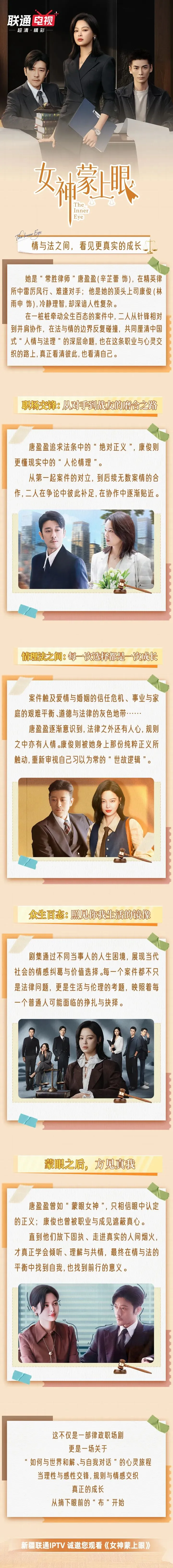 当前位置:首页>美女资讯>新疆联通IPTV诚邀您观看《女神蒙上眼》:常胜律师对决冷面上司,于百态案件中破局“人情与法理”;在碰撞与成长中,守护正义与希望.