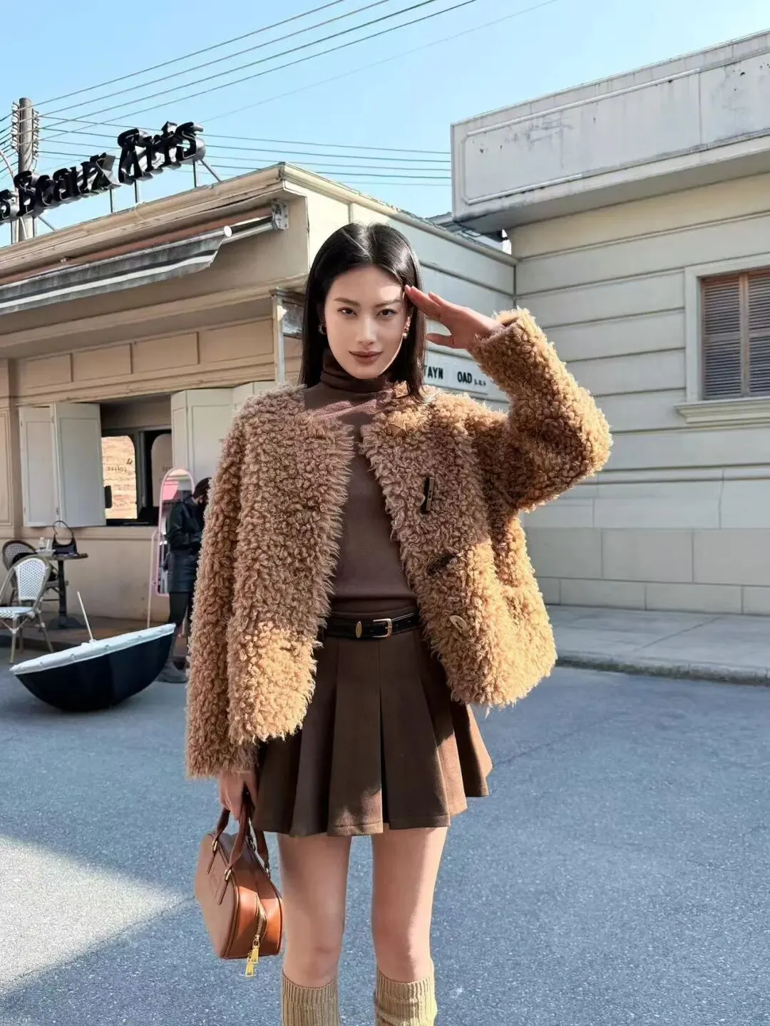 这套比较帅一点的风格,是当时拍摄的老师们搭配的哈哈哈哈,生活中我肯定不会这么去搭配。