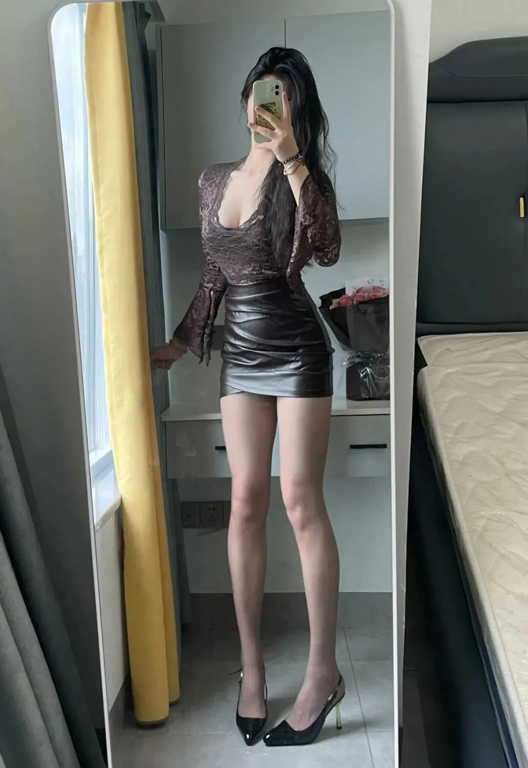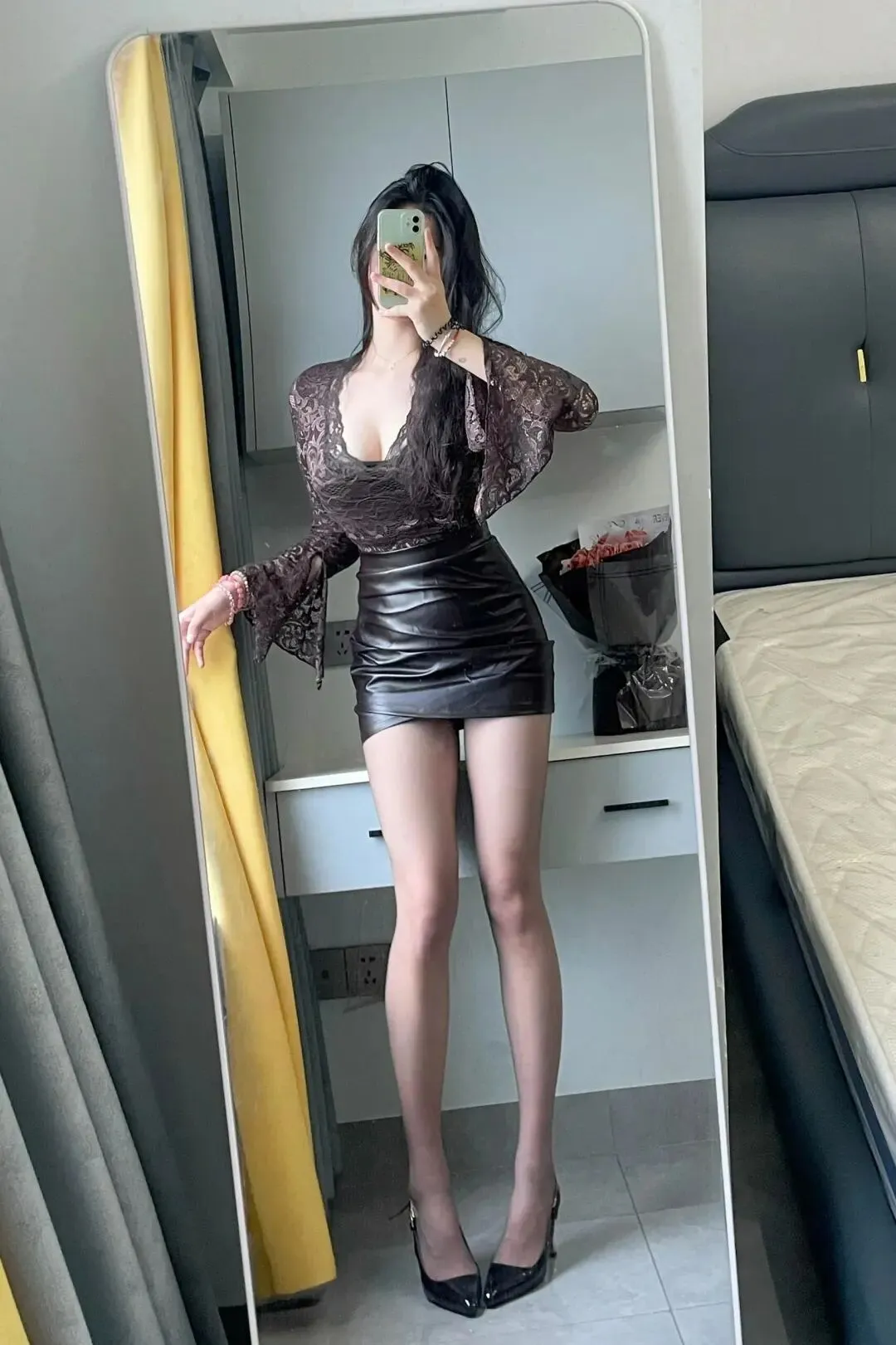 当前位置:首页>美女资讯>“蕾丝上衣+皮质半身裙+薄黑”这一套太犯规了,走路自带大姐姐气场!