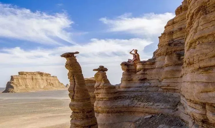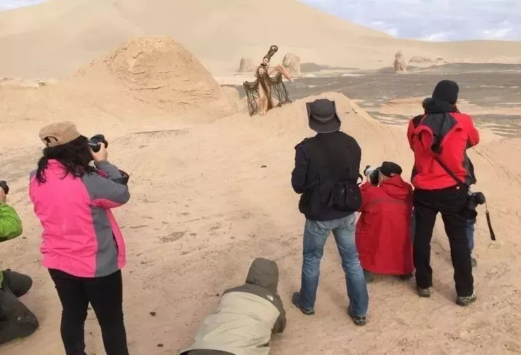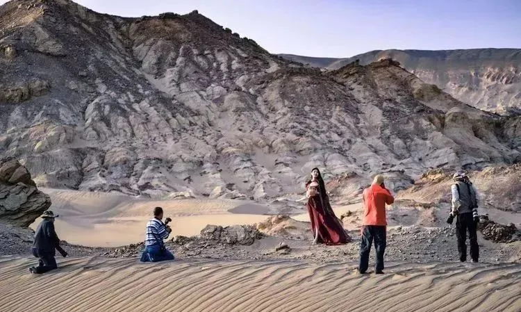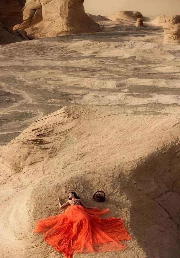原来的海底世界经历了风化及沙蚀,留下了极为壮观的雅丹地貌景象矗立在戈壁沙漠之中,没有任何人工雕饰的痕迹,造就了拍摄环境人像的自然、极佳场景。