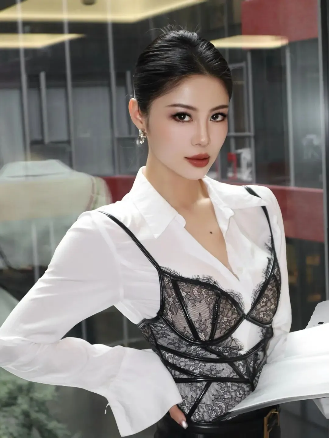 当前位置:首页>美女资讯>白衬衫+黑蕾丝马甲+开叉皮裙,这一套真的气场全开又有分寸感,走路都在发光!