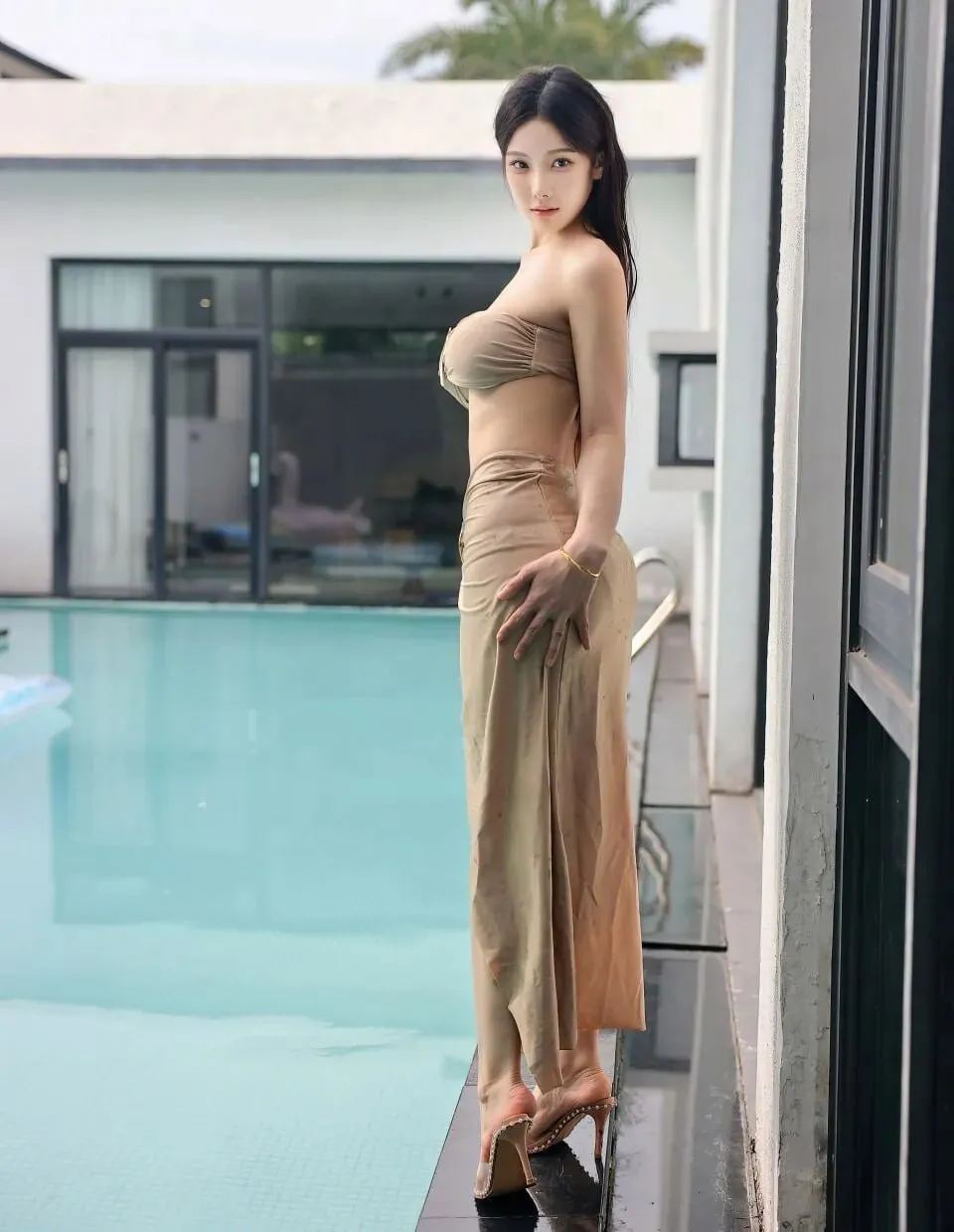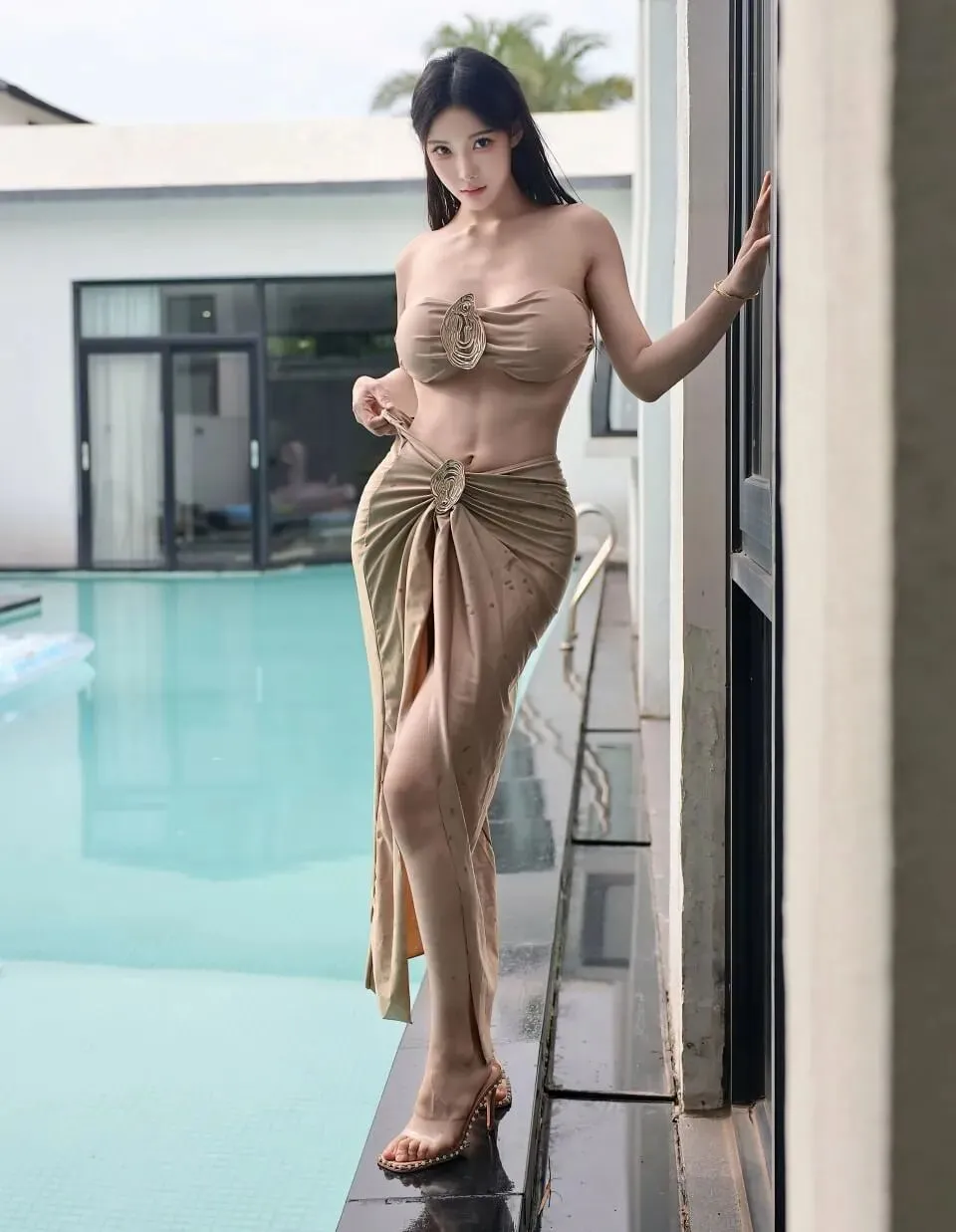 当前位置:首页>美女资讯>模特写真-梨霜儿户外泳池金色泳衣