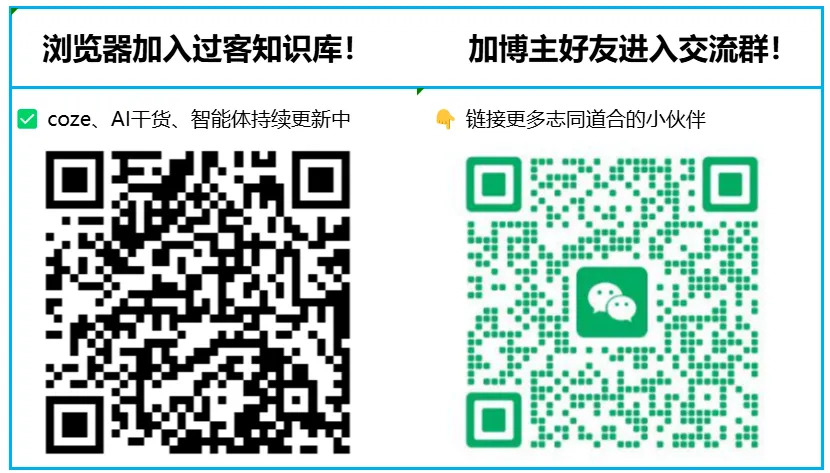 《过客AI知识库》已经上线,如果想学习coze、AI干货、智能体等前沿技术,请下方左侧扫码加入