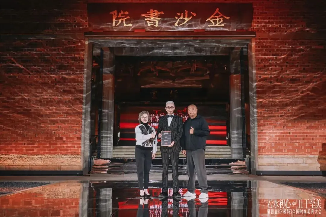 颁奖现场星光熠熠,多位行业标杆人物获得殊荣。德高望重的贡海斌先生被授予“终身成就奖”,其数十载的行业坚守与艺术追求,成为整场晚会的精神丰碑;古阿新凭借其在非遗时尚创新与乡村美育实践中的突出贡献,荣获“时尚美育突出贡献奖”;此外,李康、张洛纲、李毅等行业中坚力量获颁“年度时尚美育推动者”;马云腾、鲁记欢等优秀导演获得“年度时尚导演”称号……