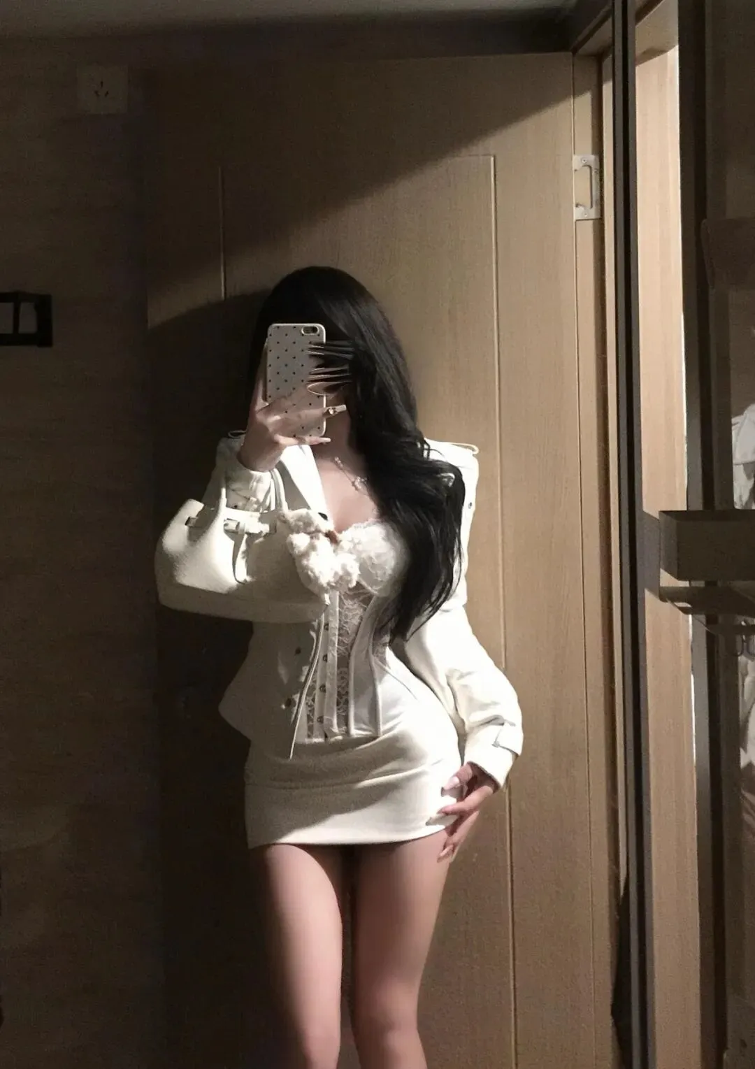“白色蕾丝拼接收腰外套 + 包臀短裙” 纯欲富家千金氛围感拉满!