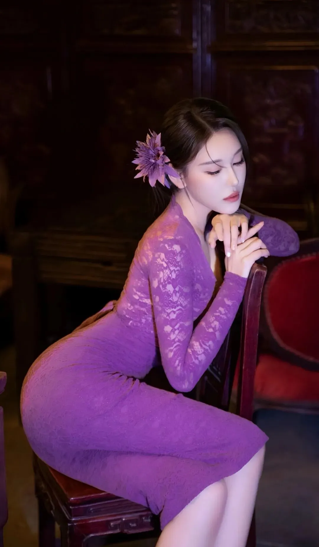 当前位置:首页>美女资讯>美女模特,穿蕾丝包臀裙,曲线婀娜,满屏大长腿