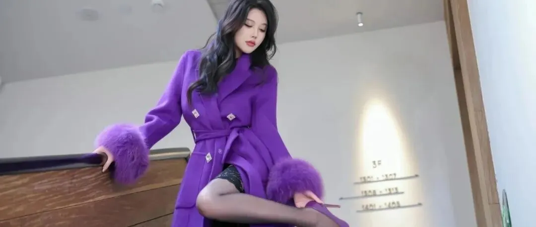 美女壁纸 | “紫色大衣+黑色吊带袜+紫色高跟”,端庄优雅的时尚穿搭!