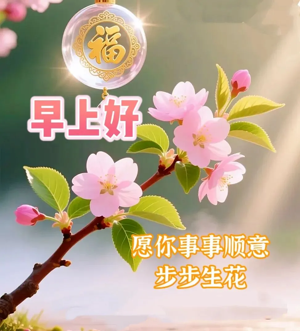 🌸✨💝晨起福门轻轻开,快乐安康如约来。心怀愉悦常自在,生活处处满是爱!新的一天,送上诚挚祝福:愿你心想事成,万事顺遂;保重身体,福寿吉祥;凡事看淡,平安健康!早上好!🥳💖🌻
