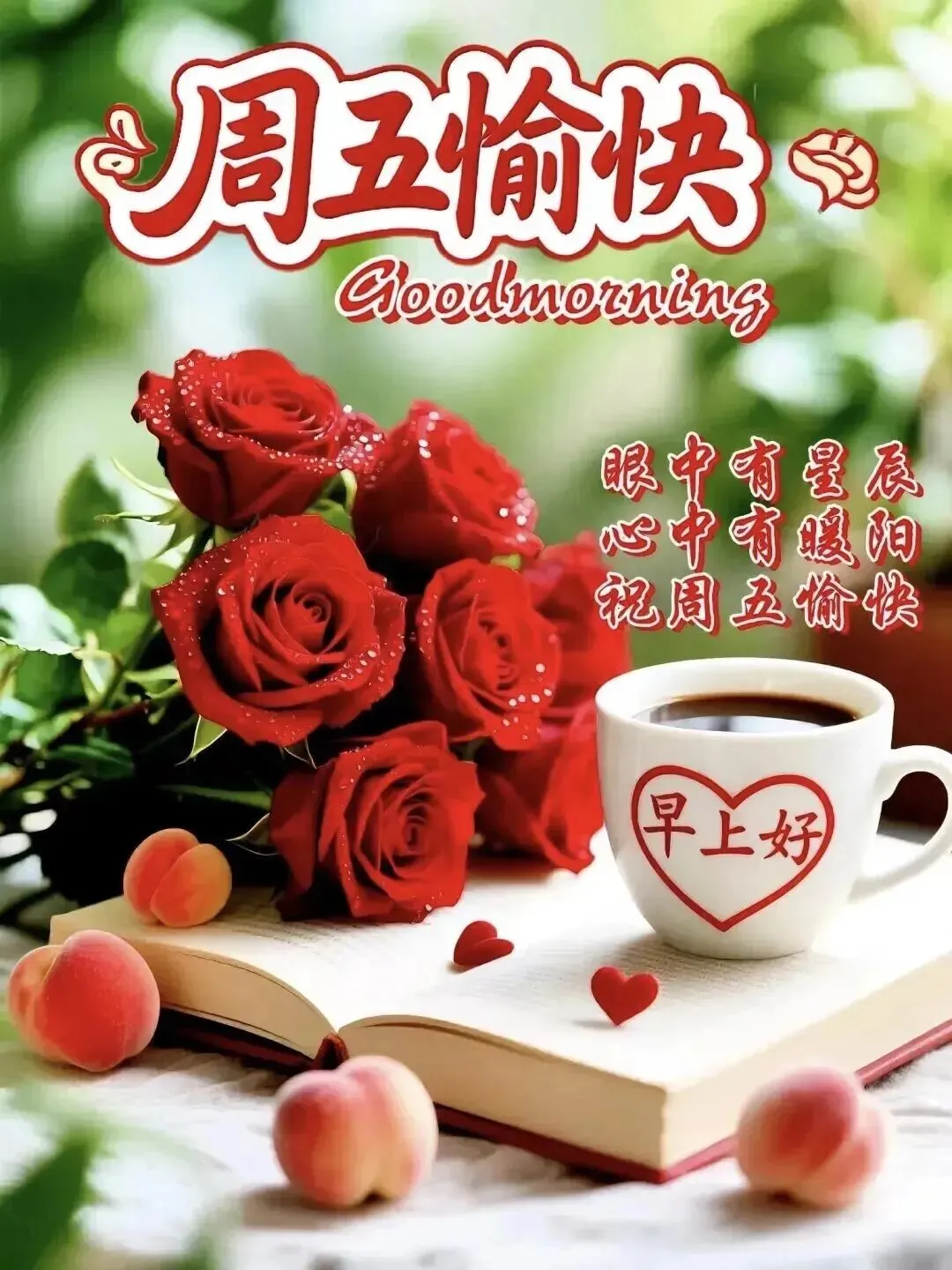 周五晨光暖融融☀️,生活处处有笑容😊,卸下忙碌的枷锁🔓,拥抱自由的轻松😌,愿好运临门常伴🍀,快乐随心而动🥳,日子甜甜蜜蜜🍬,万事称心如意,新的一天,元气早安~
