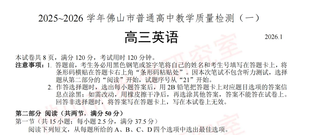 刚考完2026年佛山一模,一道英语完形填空题让我百思不得其解。