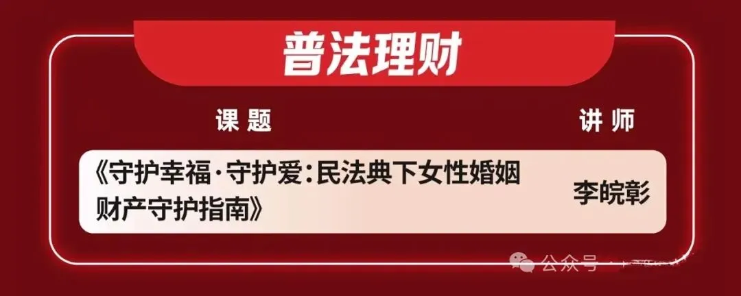 • 核心课程:《民法典下女性婚姻财产守护指南》