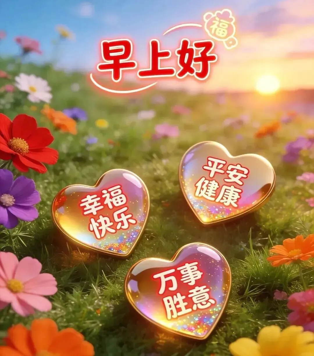 🌈一句早安,浓浓心意!🌷人生路上,彼此珍惜!🌅保重身体,健康第一!🌹新的一天,万事如意!💝衷心祝福:平安!顺心!🌞安康!如意!🌻早安吉祥!💝