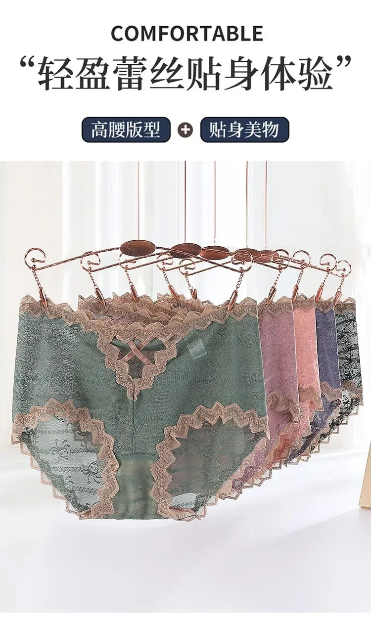 当前位置:首页>美女资讯>【法式高级感轻奢浪漫蕾丝 细腻贴肤】轻薄速干网纱镂空内裤女 透明蕾丝透气中腰加大码三角内裤女